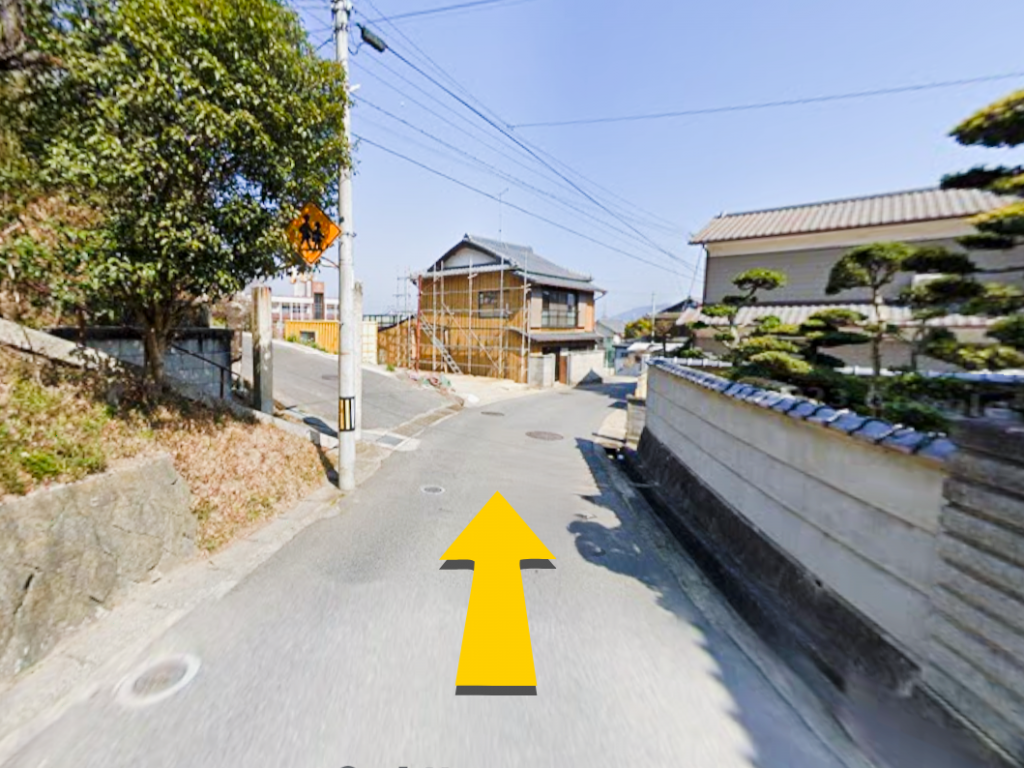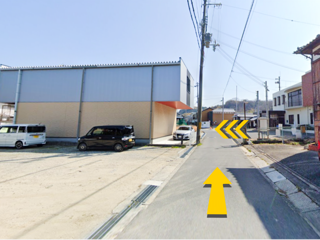 ② 道なりに真っすぐ進みます。対向車にご注意ください。(道幅が狭いのでご注意ください)